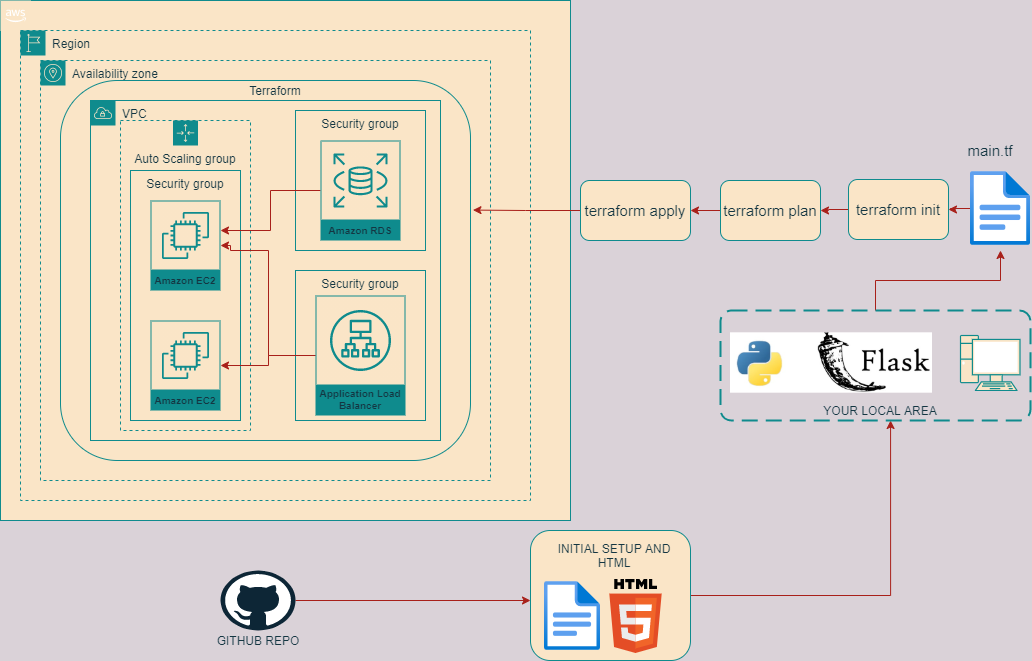 Flask on AWS Application Load Balancer with Auto Scaling Group of Elastic Compute Cloud (EC2)