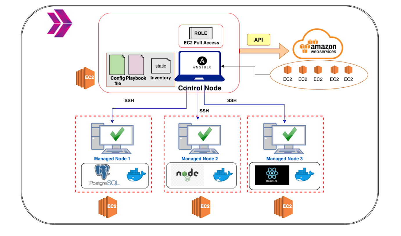 control node utilizing Ansible. This infrastructure has 1 control node and 3 EC2's as worker